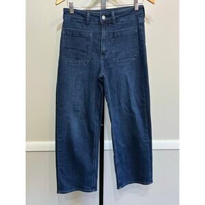 Quince Bella Stretch Patch Pocket Wide Leg Jeans High Rise Crop 27