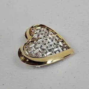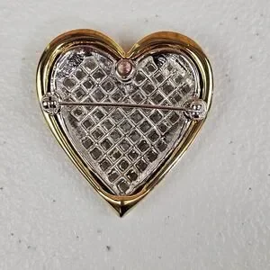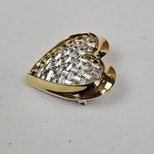 Nolan Miller Heart Brooch Baguette Rhinestone Woven Look Gold Tone Love