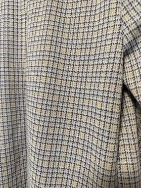 Classic double-breasted blazer with notch lapel. Plaid pattern in subtle gray and blue tones. Front patch pockets and button closure. Lightweight lining for easy wear.