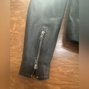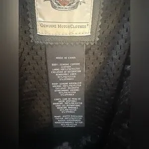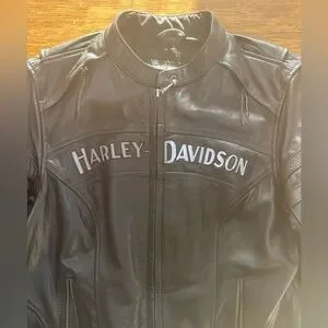 Crafted from mid-weight, soft black leather. Includes zippered hand-warmer pockets, sleeve vents, and zippered cuffs. The back side of the jacket has vents as well. The Harley-Davidson branding on the chest is reflective for increased visibility. It is a popular style known for its classic cafe racer design and functional features tailored for female riders. In excellent condition!
