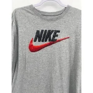 The Nike Tee Embroidered Look Gray Swoosh Logo Red Shirt Men's XL Ar4993-063