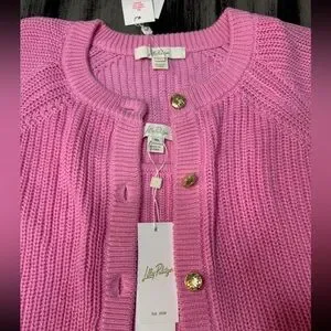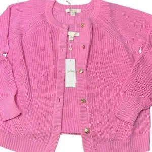 Lilly Pulitzer Bristow Ribbed Cardigan & Matching Tank Set In Pink Bliss NWT XL