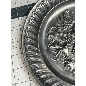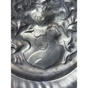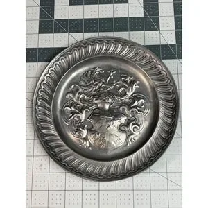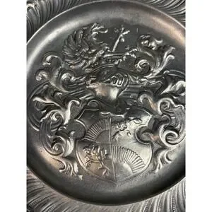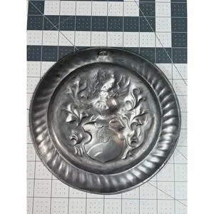 Vintage Heraldic Coat of Arms Embossed Pewter Wall Hanging Plate Knight Shield