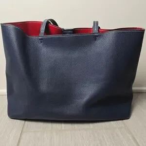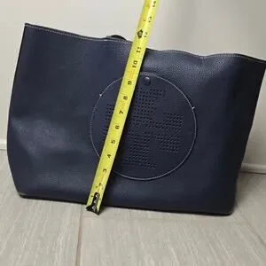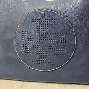 Tory Burch Perforated Tote Blue Bag Logo Shoulder Handbag