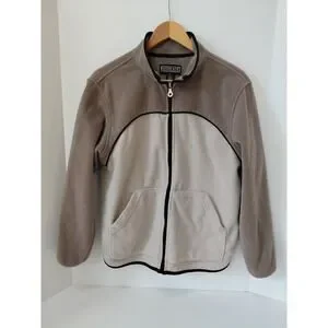 Vintage Lands' End Fleece Jacket Size M 10-12 Womens Beige Brown Full Zip