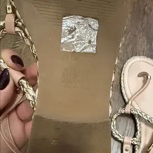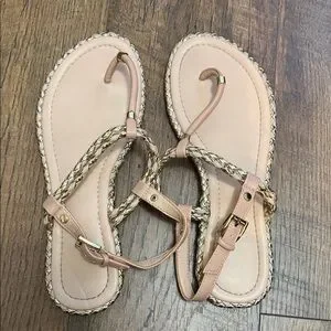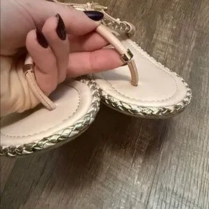 Aldo Blush Braided T-Strap Sandals with Gold Trim