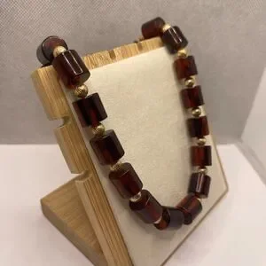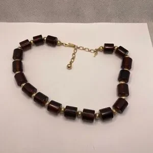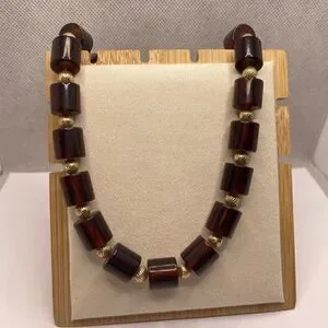 Cute chunky rare Bakelite TRIFARI choker necklace gold tone is 17 inches long check the pictures for details