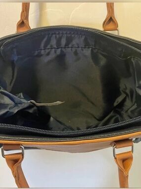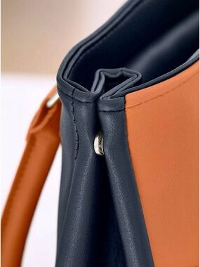 Stylish blue and tan striped tote for everyday use. Features tan top panel and handles with bold blue-and-white vertical stripes. Lightweight and versatile design that complements casual and dressy looks.NVBE