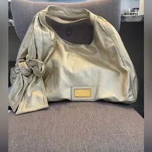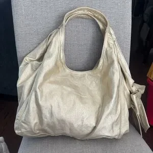Valentino Garavani Gold Metallic Leather Hobo Bag Y2K Vintage