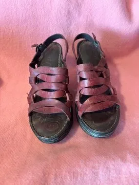 Rich garnet red, thick leather Born wedge heels. Comfortable! Add style, comfort, and garnet red to any outfit. See other listings to bundle :)