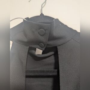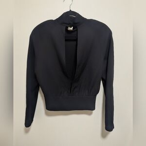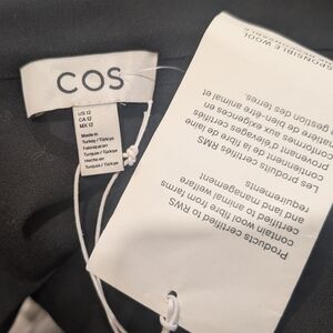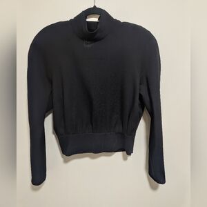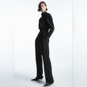 This season, the COS womenswear team played with proportion and exaggerated cuts. This black top is designed with sculpted power shoulders with raglan sleeves that create a softer silhouette. Design details include a delicate roll neck, an open back and a wide ribbed hem that creates a waisted, cropped shape. It's crafted from 100% wool-crepe that's certified to the Responsible Wool Standard.