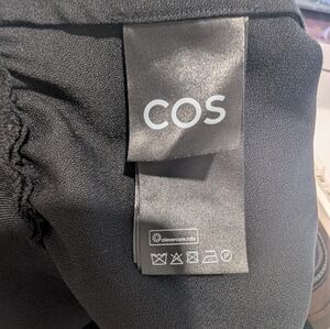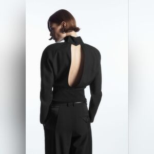 COS | Power-shoulder Open-back Waisted Wool Top In Black