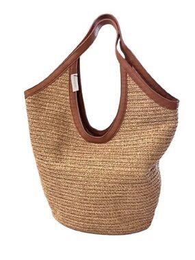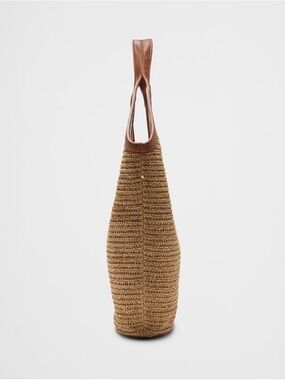 🆕- Banana Republic- Woven Hobo Straw Tote Bag with Brown Trim