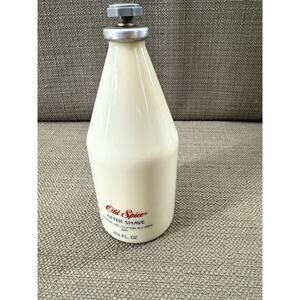 The bottle is made of heavy frosted glass with the original silver star cap intact. Label graphics remain clear and well-preserved, and the bottle displays beautifully from all angles. A great example of classic Old Spice packaging from the era when these bottles were widely used in men’s grooming and bathroom decor.