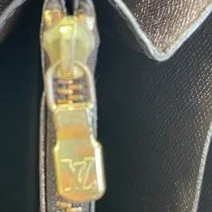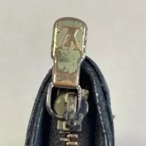 Zipper pull and zippers show wear; peeling inside coin pouch; light scuffs and fading on canvas. Please see the pictures as they are part of the listing.