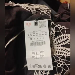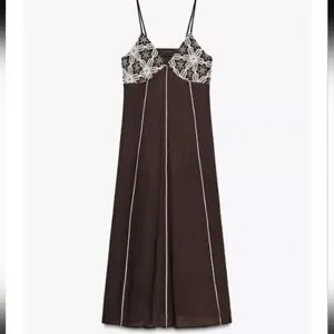 Stylish black maxi dress with white lace details. Perfect for any occasion.