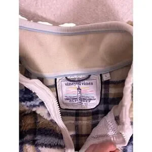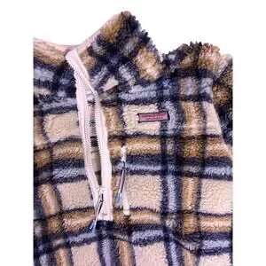 Vineyard Vines Sherpa Quarter Zip Beige Women’s L Preppy Cozy Pullover