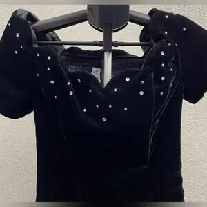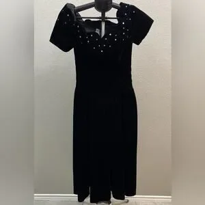 Vintage Positively Ellyn Black Velvet 80's Off the Shoulder Dress Size 6