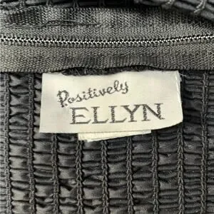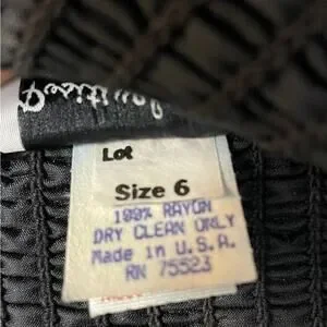 Used, excellent condition. Beautiful vintage dress. Rhinestone accents on the shoulders and chest. Midi length dress. Approximate measurements shown in photos. Scalloped neckline. Smocked back. Zipper closure up the back. Made in the U.S.A.