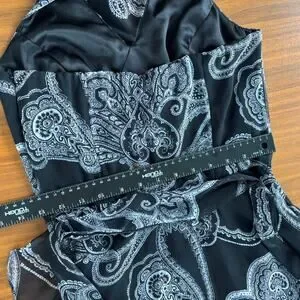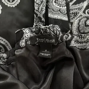 White House Black Market Paisley Midi Dress Halter Black White Wrap Bow Size 0