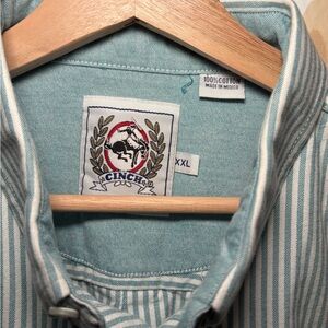 Cinch Button-Down Men’s Stripe Shirt Green/White XXL Classic Western 100% Cotton