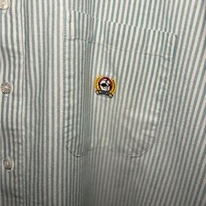 Button-down collar and chest pocket with small logo.