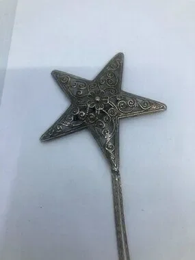 Vtg stars silver tone chain filigree chatelaine brooch