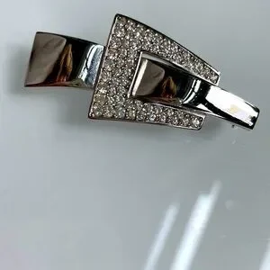 Vintage Modernist Signed 1977 GIVENCHY Paris/New York, silver-tone and Swarovski crystal rhinestone pin brooch. This is a rare, stunning, and collectible piece in excellent used condition. The design features a sleek, geometric buckle or belt motif, making it a timeless statement accessory.