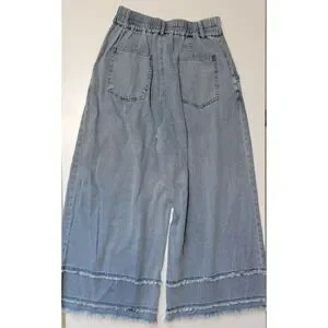 JODIFL lightweight wide leg boho jeans with tiered fringe fray bottom hem