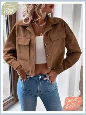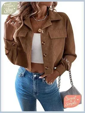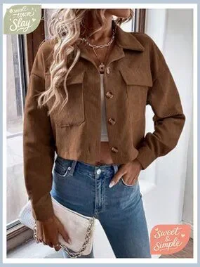 Brand new, never worn, and in flawless condition — this stylish corduroy cropped jacket offers a casual, versatile look perfect for daily wear, weekends, going out, or holiday occasions. The soft, lightweight fabric is comfortable and pairs well with a variety of outfits.