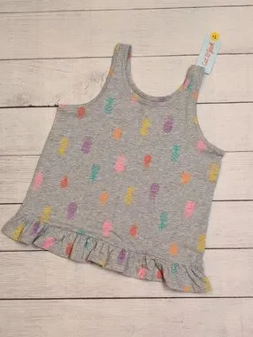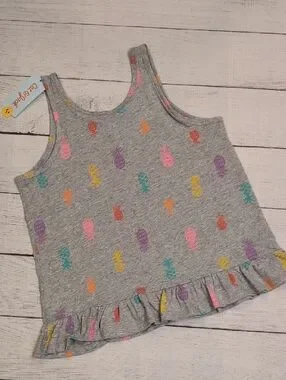 Cat & Jack Gray Tank Top with Multicolor Pineapple Print and Ruffle Hem