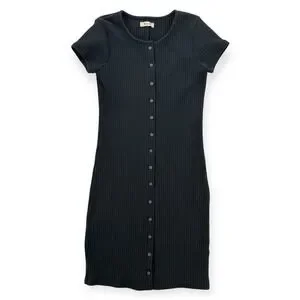 Madewell Dress Womens XS Black Ribbed Button up Pencil Fitted Knit Stretch
