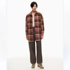 Aritzia Wilfred Free The Ganna Jacket Wool Blend Size XS Brown Pink Cream Plaid