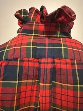 Ralph Lauren Red Navy Yellow Plaid re-worked ruffle collar shirt