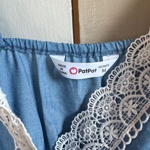 PatPat Light Blue Chambray Lace Trim Romper