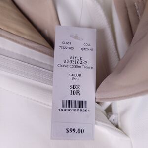 Tailored straight-leg pants with a clean front. Subtle waistband and belt loops. Crisp white color for versatile styling. Smooth fabric with a polished finish.