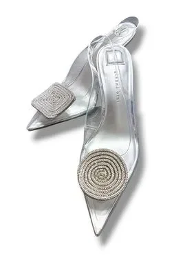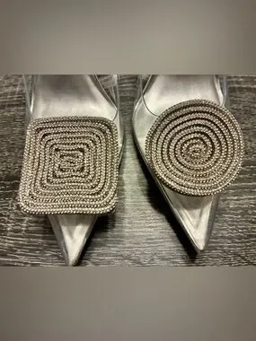 💎 Gianni Bini Clear Rhinestone Heels Size 8 Cinderella Pointed Toe Pumps