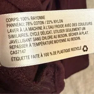 Pattern: Solid Material: Body 100% rayon Panels 78% cotton 22% nylon