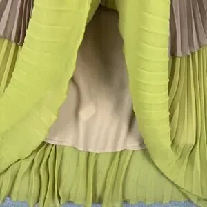 • Style: Delfi Collective Paige Midi Dress Off Shoulder Lined Colorblock Pleated Layered Chiffon Tiered Retro Boho Flowy Cocktail Wedding Clubwear Summer Vacation Cruise Resortwear Made in USA