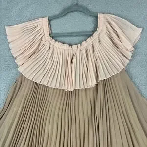 Delfi Collective Paige Dress Large Boho Off Shoulder Colorblock Pleat Retro USA