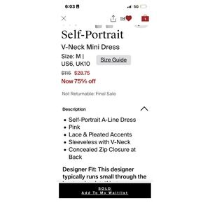 Self-Portrait Pink Lace Pleated Mini Dress US 6 Party Cocktail
