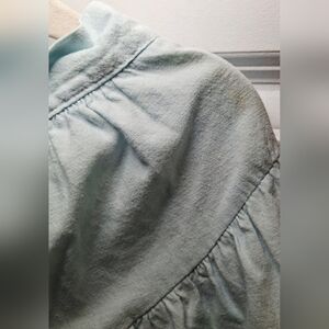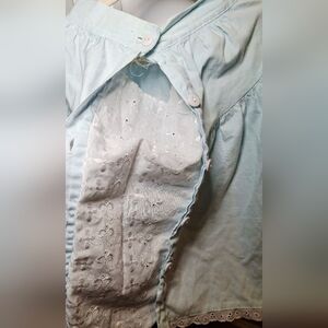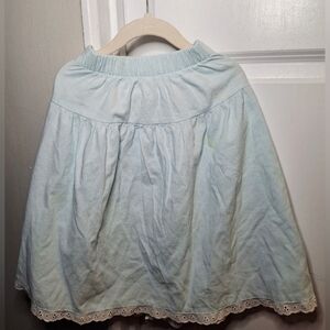 Pretty cotton blend button-up vintage skirt with lace trim. Made in Canada. There's some light fabric wear and a few stains (pictured), otherwise in good used condition.