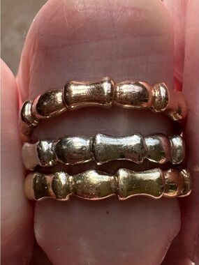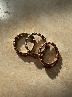 Three Real Gold-Tone Bamboo Stackable Ring Set - Women Jewelry