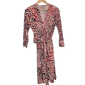 Banana Republic Issa Collection Red Ceramic Printed Three-Quarter Sleeve Dress