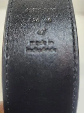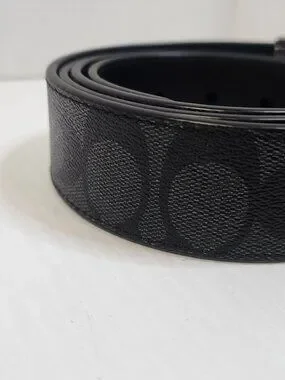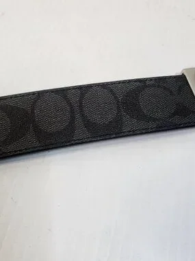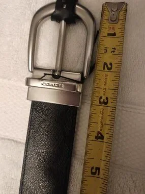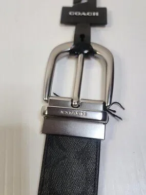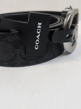 The Coach Unisex Black Logo Dress Belt is a stylish and sophisticated accessory for men. Made from high-quality leather with a stainless steel buckle, this belt features the iconic Coach logo as an accent. The adjustable buckle ensures a comfortable and personalized fit, while the sleek black color and slim 1.5" width make it suitable for both casual and dressy occasions. This designer belt adds a touch of luxury and refinement to any outfit, making it a must-have for the fashion-conscious man.