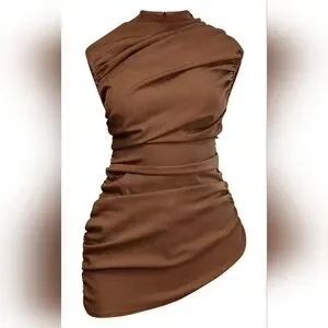 PLT Label Dark Taupe Tailored Extreme Ruched Asymmetric Top Size 12