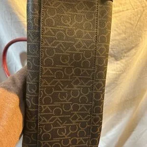 Calvin Klein Brown Monogram Shoulder Bag with Red Trim