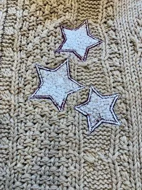 Burgundy / Dark Red Star Patches on Elbows and Taylor Swift Patch above Hem