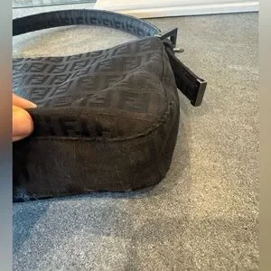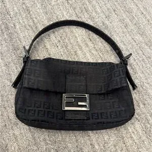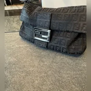 Iconic Fendi FF jacquard fabric. Fold-over flap with signature silver-tone FF buckle. Short shoulder strap for baguette carry. Elegant and versatile design. Signs of wear are in photos. Still a lot of life.