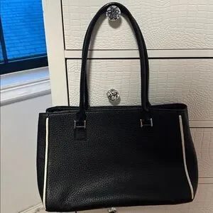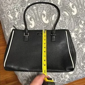 kate spade Black Pebbled Leather Shoulder Bag with Cream Trim